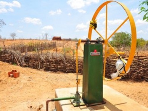 A bomba d’água popular aproveita os poços tubulares desativados para extrair água subterrânea por meio de um equipamento manual que contém uma roda volante. Quando girada, essa roda puxa grandes volumes de água, com pouco esforço físico. Pode ser instalada em poços de até 80 m de profundidade. Nos poços de 40 m, chega a puxar até mil litros de água em uma hora. É uma tecnologia de uso comunitário, de baixo custo e fácil manuseio. Se bem cuidada, pode durar até cinquenta anos. A água da bomba tem vários usos: para produzir alimentos, dar de beber aos animais e usar nos afazeres domésticos. Geralmente, cada bomba beneficia dez famílias. Foi criada pelo holandês Gert Jan Bom em 1980 e está livre para ser construída à vontade. Fonte: ASA Brasil e IRPAA