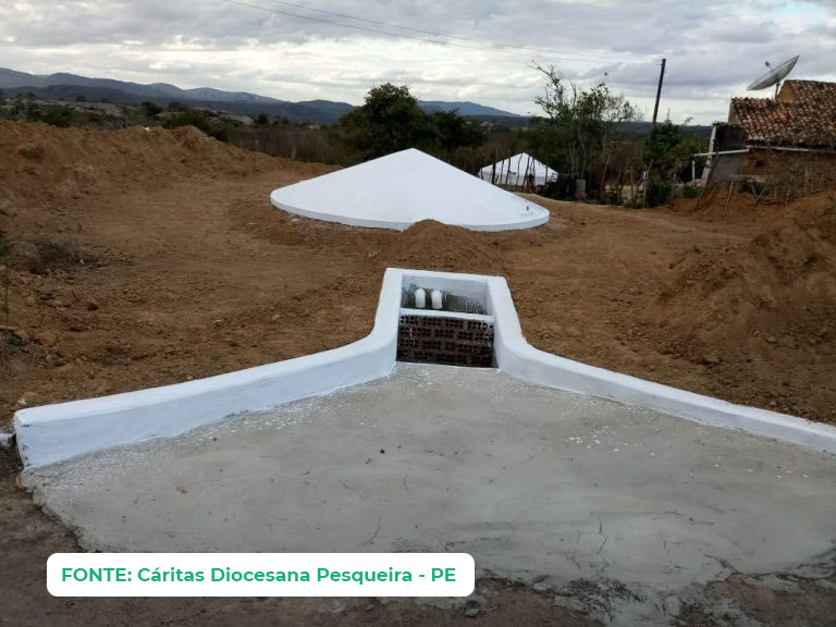 A cisterna de enxurrada é uma tecnologia social de captação e reservação de água de chuva, constituída de um sistema de coleta e decantação de enxurradas e um reservatório coberto e enterrado no chão. Construído em formato cilíndrico enterrado no solo e coberto, com diâmetro interno de 6,20 m e profundidade de 1,8 m, capaz de armazenar 52 mil litros de água de chuva coletada no eixo das enxurradas.